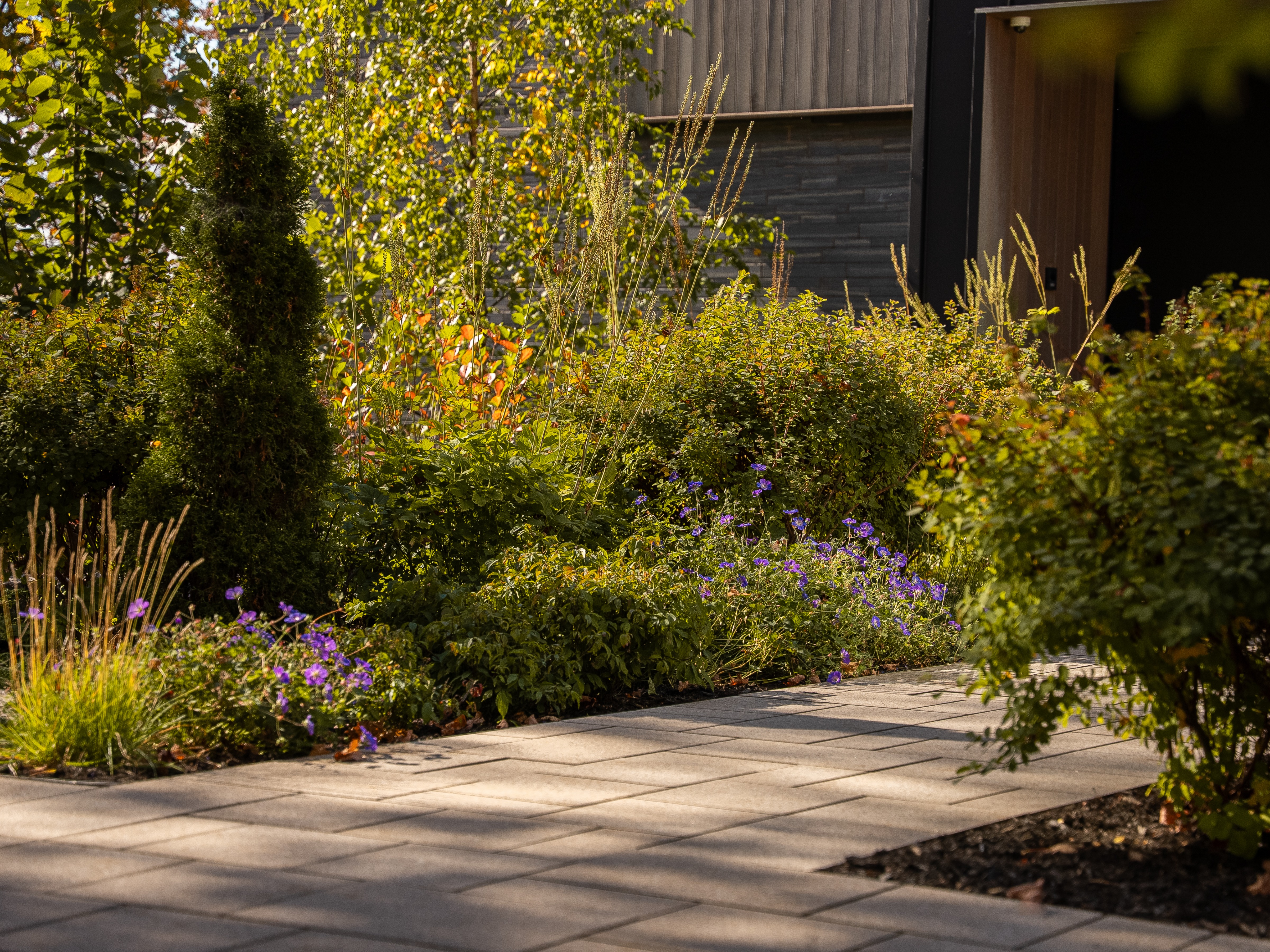 Ainsi, certains standards longtemps valorisés, tels que la pelouse impeccablement verte, uniforme et exempte de pissenlits, tendent à faire place à une cour qui s’adapte au vivant plutôt que de le contraindre. Cela passe, par exemple, par l’intégration de trèfle dans la pelouse, par une plus grande tolérance à la diversité végétale ou encore par le choix de plantations qui s’insèrent plus harmonieusement dans leur environnement.