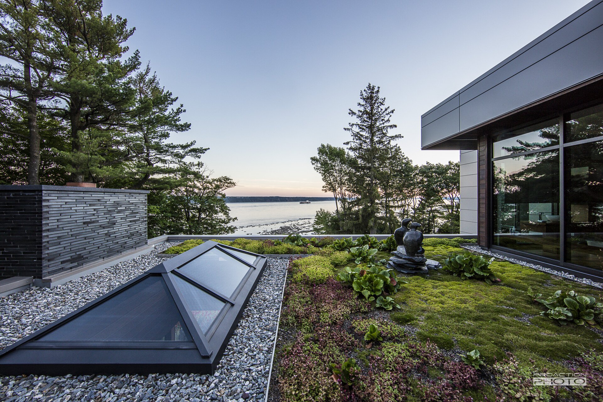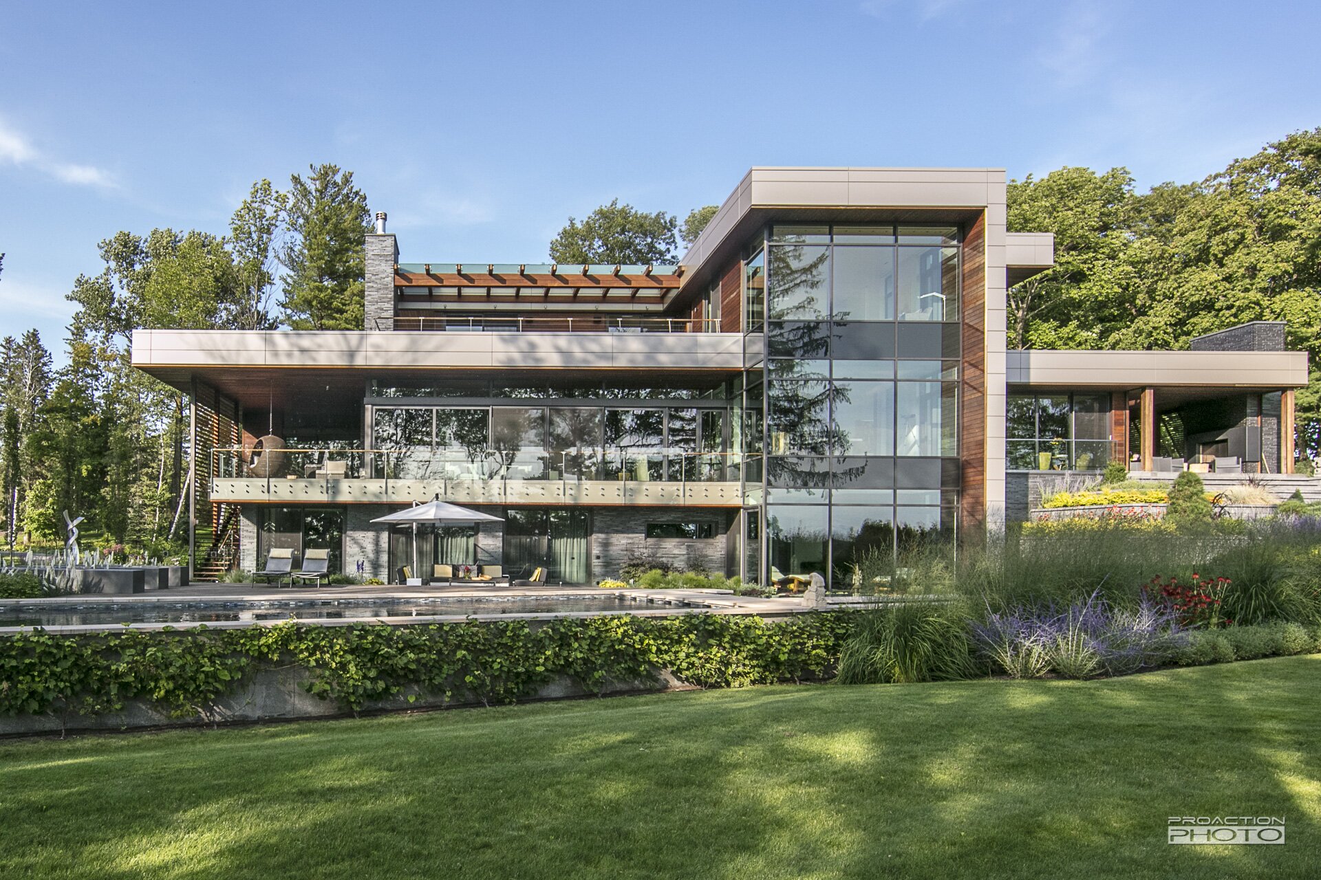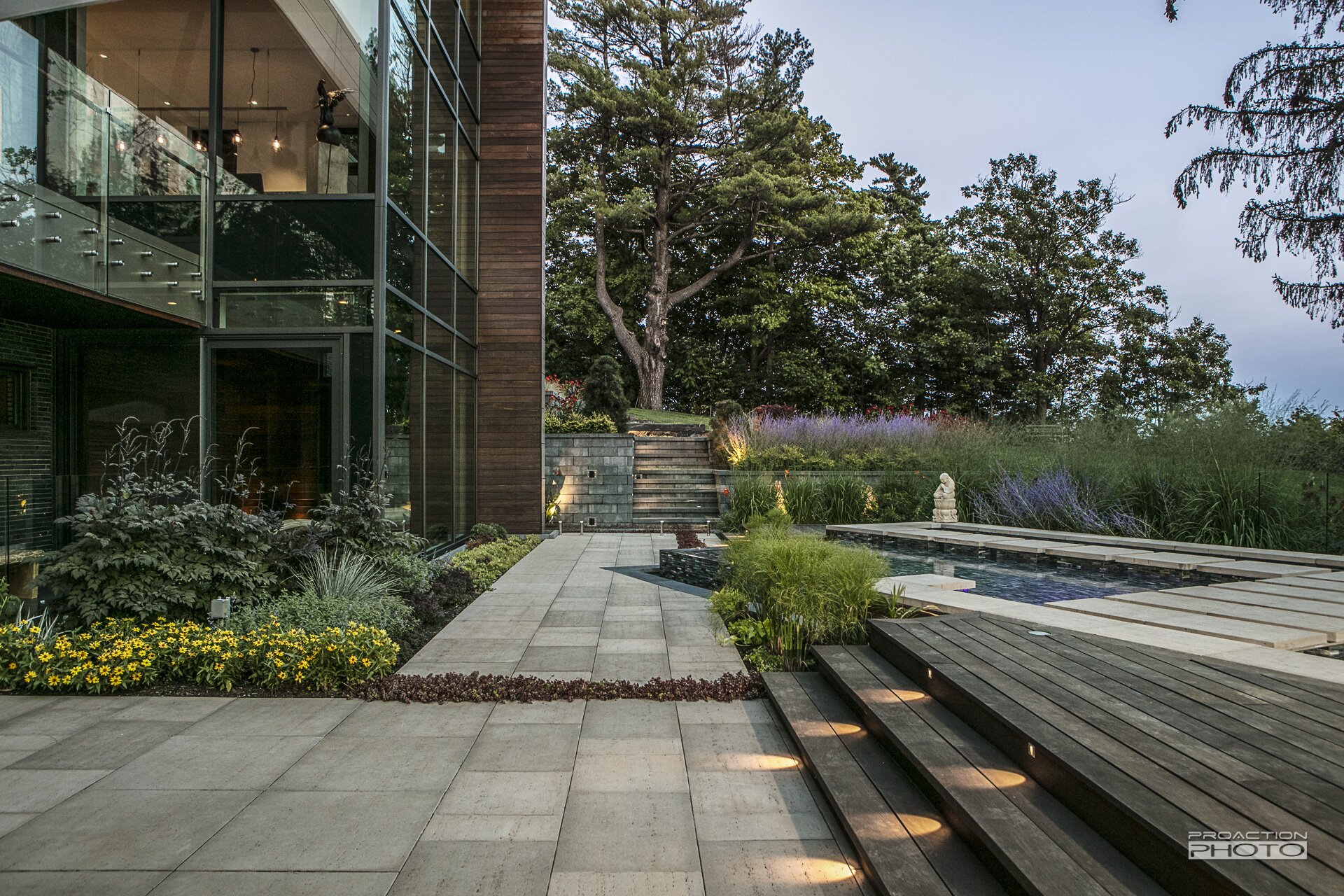 L’architecture de cette résidence unifamiliale a été conçue dans l’objectif d’apprécier la nature et de créer un sentiment d’union avec le paysage. Afin de traduire ces intentons de design dans l’architecture du paysage, nos équipes de conception et de réalisation ont mis leurs nombreuses années d’expérience à profit. La collaboration de l’équipe multidisciplinaire et l’investissement de cœur des clients ont permis la création de ce paysage sculptural.