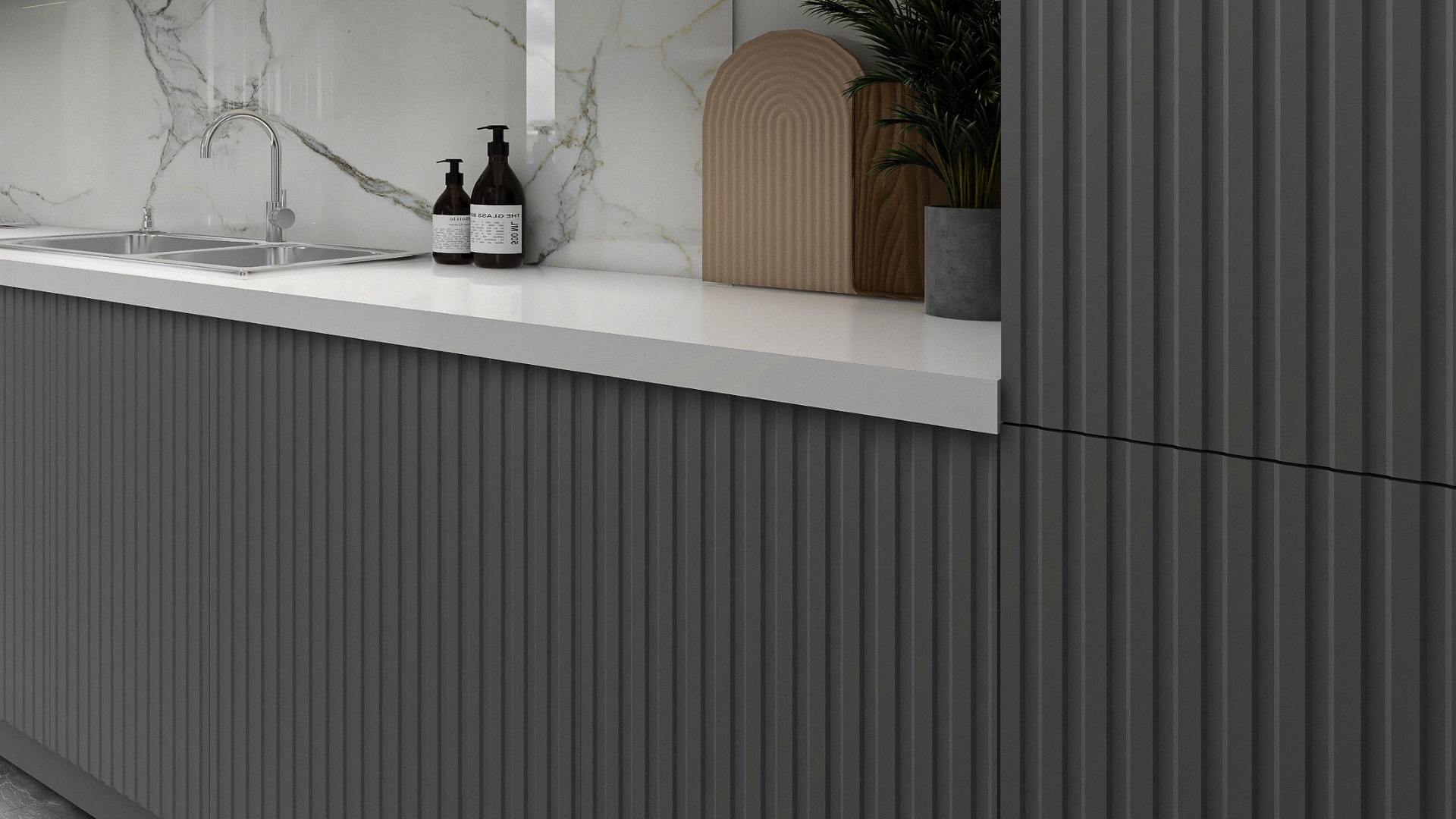 Le relief continue de faire parler de lui en 2026. Déjà bien présent dans les cuisines ces dernières années, le motif cannelé et strié s’invite maintenant dans toutes les pièces de la maison : de la salle d’eau à la chambre, en passant par le hall d’entrée.