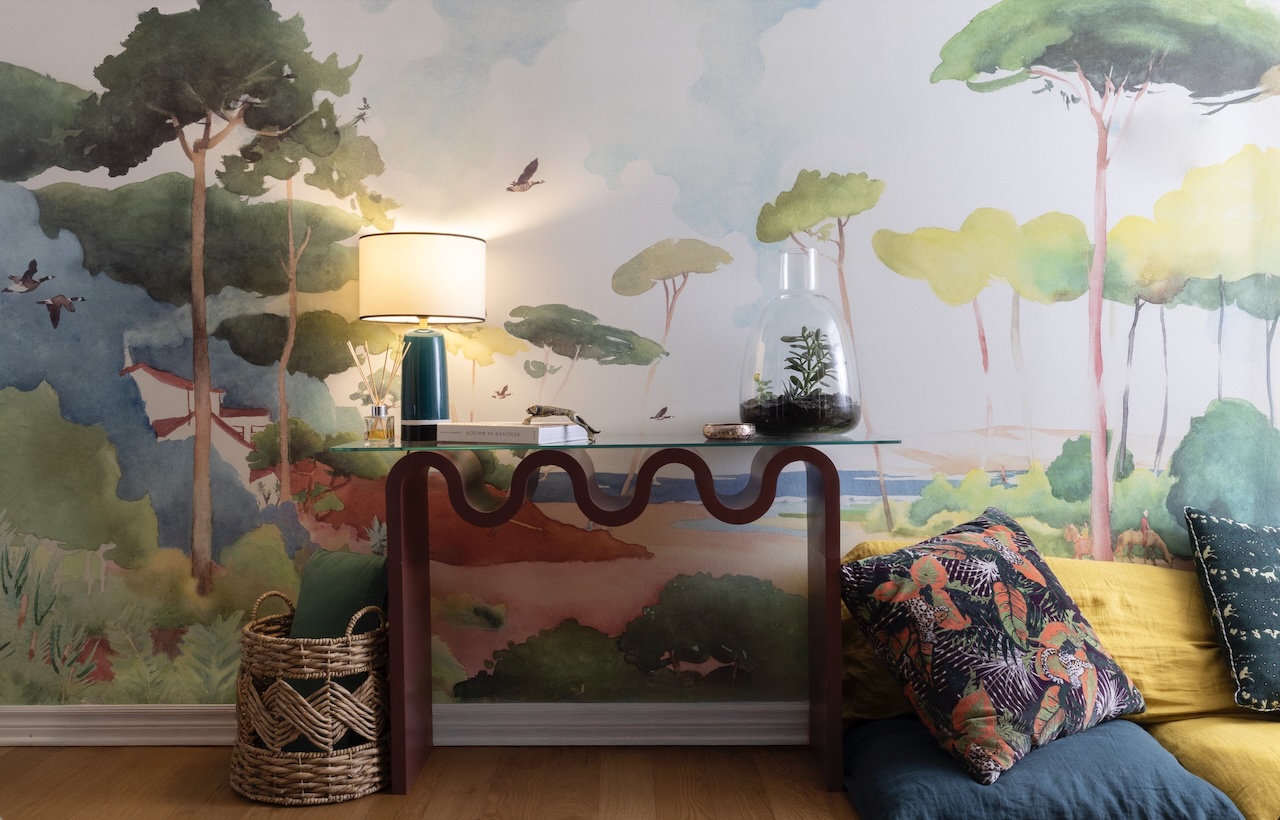 Dans cette création pour un sous-sol situé sur le Plateau, l’intention lumineuse repose sur l’équilibre entre caractère et douceur. Montreal Home Design a choisi une lampe Sarah Lavoine aux teintes profondes afin de créer un contraste élégant avec le papier peint illustré et le décor coloré. Ici, la lumière n’est pas seulement fonctionnelle : elle devient un élément émotionnel qui réchauffe l’espace et souligne les nuances du mural. Les couleurs structurent, dynamisent et racontent une histoire. La diffusion chaleureuse de la lampe crée une atmosphère enveloppante, transformant ce sous-sol en un lieu vivant, chaleureux et profondément expressif, fidèle à l’esprit du projet.