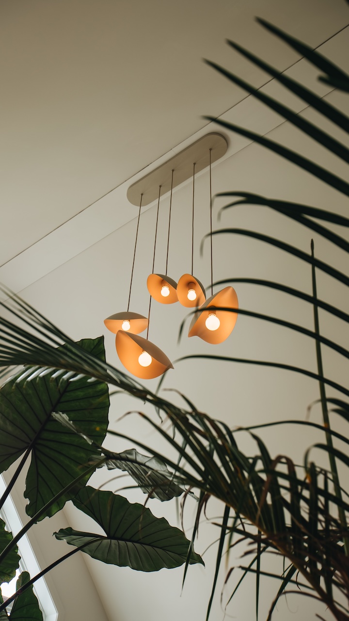 Dans ce projet, l’éclairage est rapidement devenu une véritable signature de l’espace. Entouré d’une végétation abondante qui crée une ambiance de jungle intérieure, le choix de ce luminaire s’est imposé presque instinctivement. Ses formes organiques et aériennes évoquent des oiseaux en suspension,