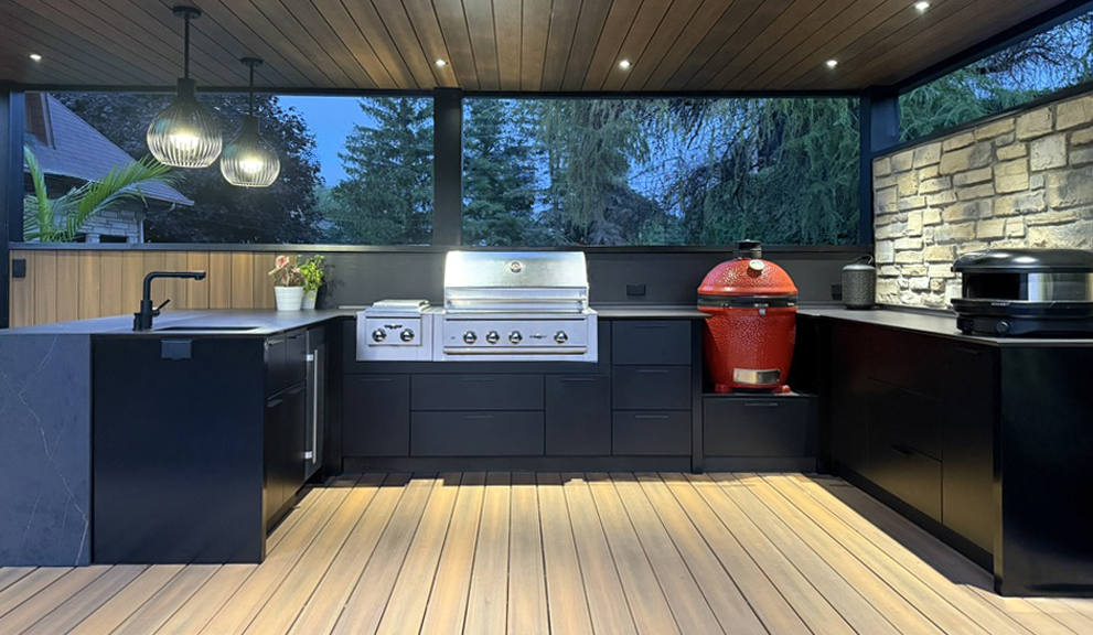 Inspirées par le mode de vie québécois et conçues pour résister à son climat, nos cuisines extérieures allient performance, élégance et longévité. Elles s’adaptent à votre façon de cuisiner, de recevoir et de profiter de l’extérieur, tout en mettant en valeur l’architecture et le paysage qui les entourent.