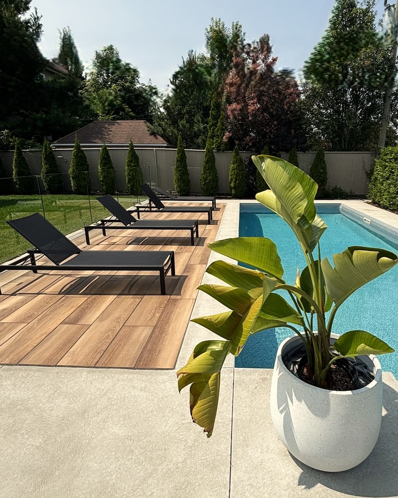 La piscine devient souvent la pièce maîtresse du projet. On la souhaite sur mesure, avec des marches intégrées, des plages immergées et parfois même des jets d’eau discrets qui ajoutent mouvement et ambiance.