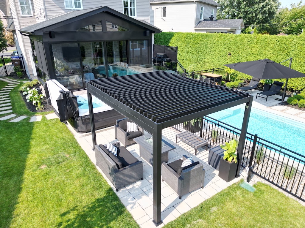 Les pergolas bioclimatiques s’imposent comme des alliées du quotidien, permettant de moduler l’ombre et la lumière, tandis que l’éclairage, désormais intégré dès la conception, structure les zones de vie et met en valeur les volumes.