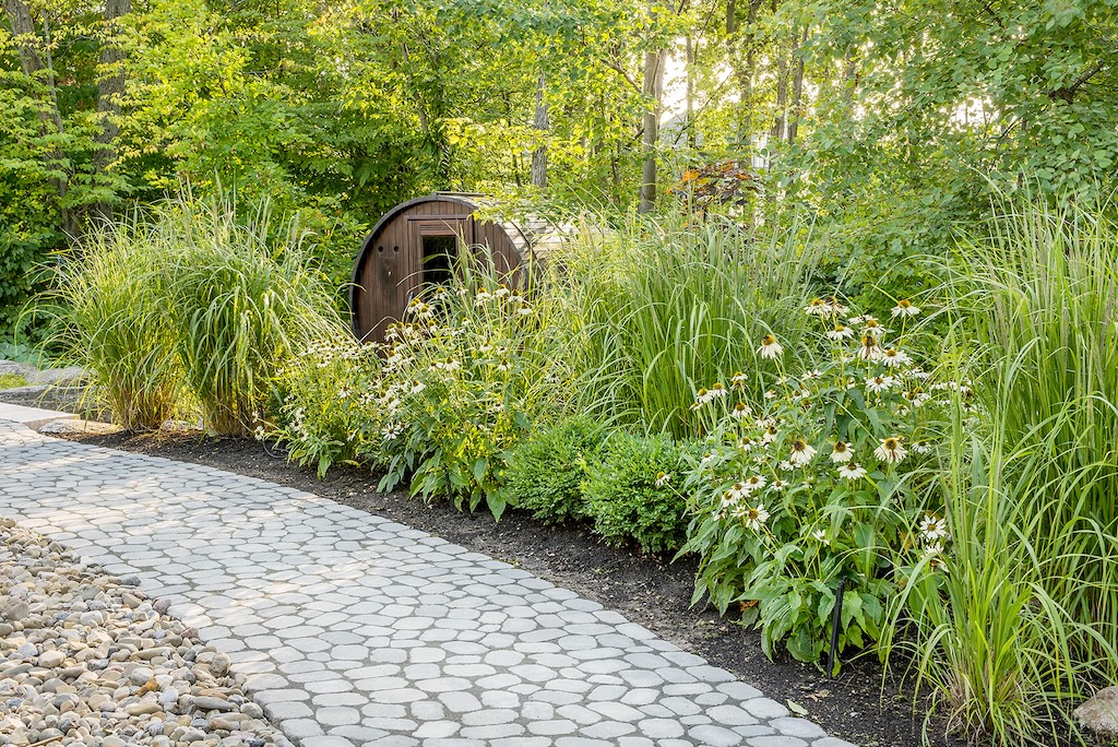 Cette année, la nature et les formes organiques deviennent une véritable source d’inspiration : courbes douces et lignes naturelles guident la conception des jardins. Les structures rigides s’estompent au profit d’aménagements plus fluides, plus vivants. La biodiversité occupe également une place centrale en renforçant la résilience du jardin. Celui‑ci est conçu pour être perméable, dynamique et accueillant pour la faune locale. Un jardin uniquement décoratif ne suffit pas : cette faune a besoin d’un environnement fonctionnel pour assurer sa longévité.