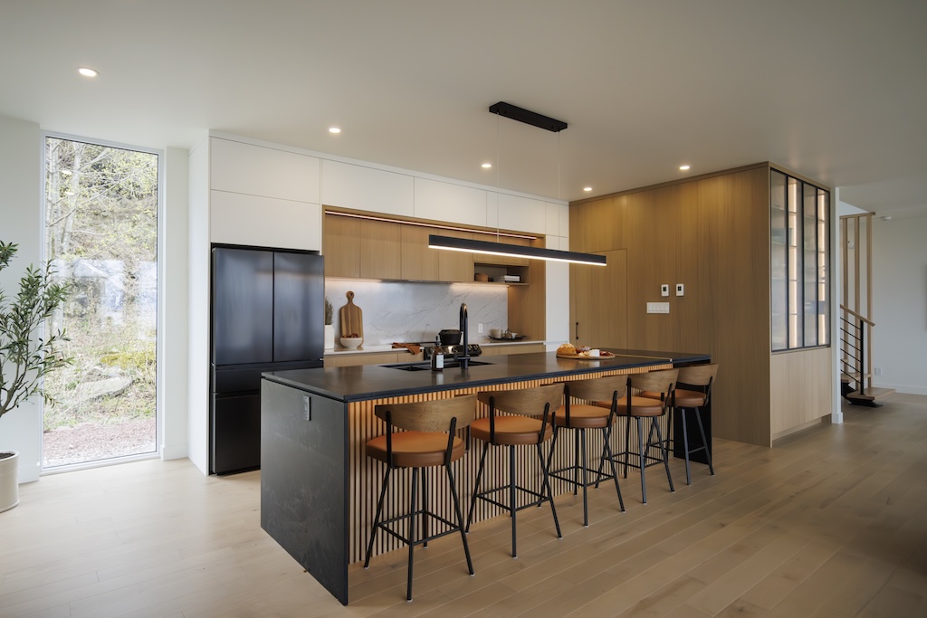 Ce qui nous distingue, c’est notre espace 24H, une première au Canada. Accessible en tout temps, cette boutique innovante permet aux clients d’explorer virtuellement les matériaux et d’obtenir une estimation budgétaire instantanée à partir des mesures réelles de leur cuisine. Une façon simple, moderne et flexible de planifier un projet, sans contrainte d’horaire.