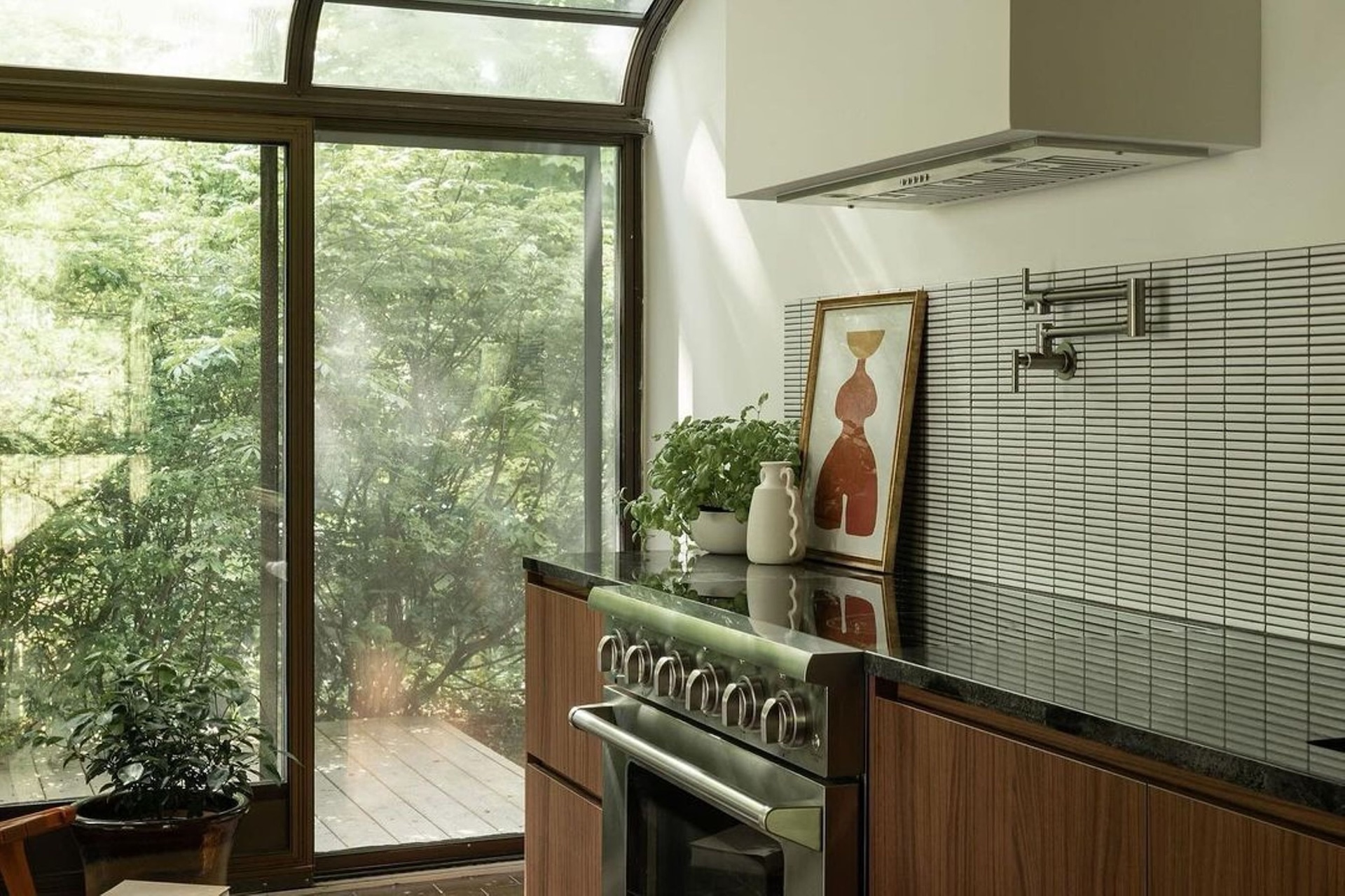 Sans surprise, cette cuisine a suscité un vif engouement : elle appartient à Cœur de Pirate, dont l’univers touche déjà tant de gens. Ici, Atelier Jacob signe un espace lumineux où l’esprit Mid-Century dialogue avec la modernité du chalet. Les volumes sont ouverts, les lignes épurées, et les matériaux choisis créent une transition naturelle vers la salle à manger et le salon. On devine un lieu pensé pour vivre, recevoir et respirer, façonné en collaboration avec Langlois Albert et la designer cuisiniste Laurie Bonin-Gohier. Une réalisation où l’élégance discrète laisse toute la place à la personnalité de la propriétaire.