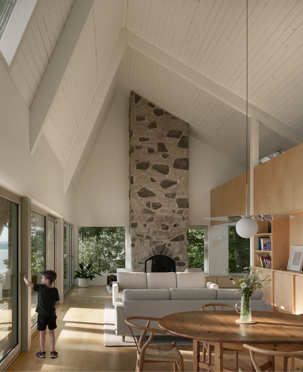 Dans ce projet en pleine nature, Steve Girard Designer signe des chambres et salles de bain où calme et cohérence dominent. L’architecture hybride d’inspiration scandinave se reflète dans des lignes épurées, des matériaux naturels et une palette feutrée. Le bois et la pierre prolongent l’esprit du site, tandis que les volumes généreux et la lumière abondante créent des espaces intimes, chaleureux et parfaitement intégrés à l’architecture du lac.