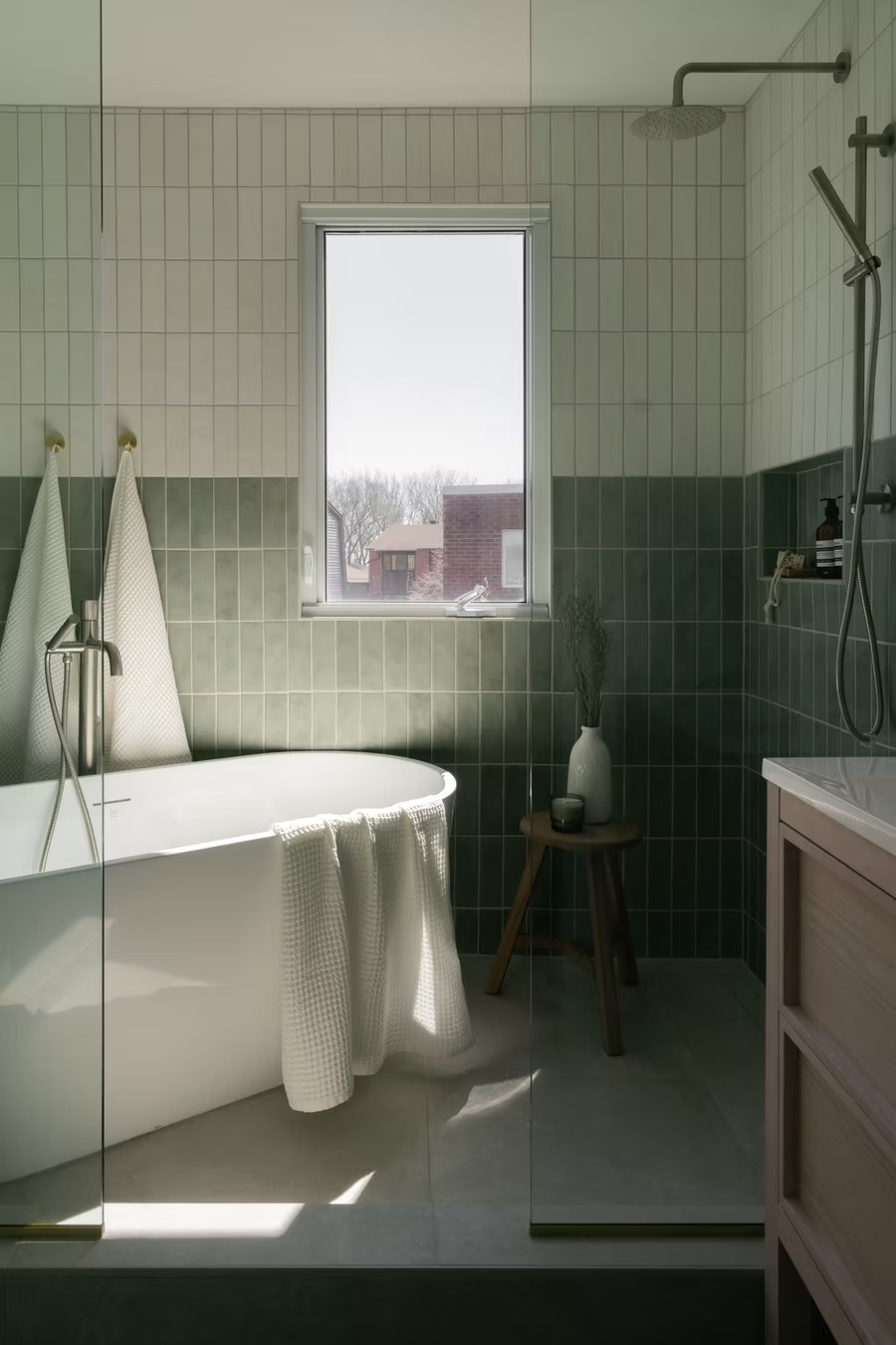 Deux PROS de La Pièce ont réussi à faire de cette salle de bain un coup de coeur des lecteurs. La photographe Sofie Photographe qui a su retranscrire en photo l'enveloppante douceur de la pièce rénovée par Atelier Cinquante-Deux. Malgré sa petite taille, cette salle de bain a tout d'une grande grâce au bain et la douche intégrés dans le même espace. Cette "wet room" prend des allures de spa grâce au choix de céramique artisanale posée verticalement avec un délimitation de couleur. La fenêtre permet aux rayons du soleil d'illuminer la pièce et de rendre l'heure du bain des plus relaxantes.